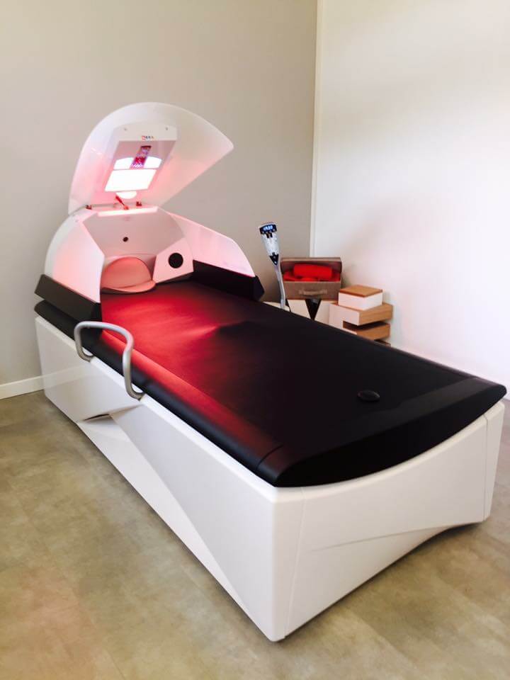 Je rentre dans la machine qui, je dois dire, est assez impressionnante ! Elle a un design très “Cinquième Élément” ! Le caisson est capitonné pour protéger la peau de l’azote et la tête dépasse complètement de la cuve.